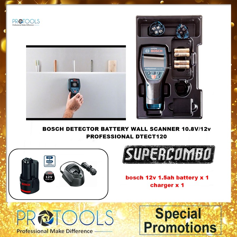 Related : Bosch Professional D-Tect 120 Wall Scanner Detector / Audible and visual warning signals when objects are detected in the wall..