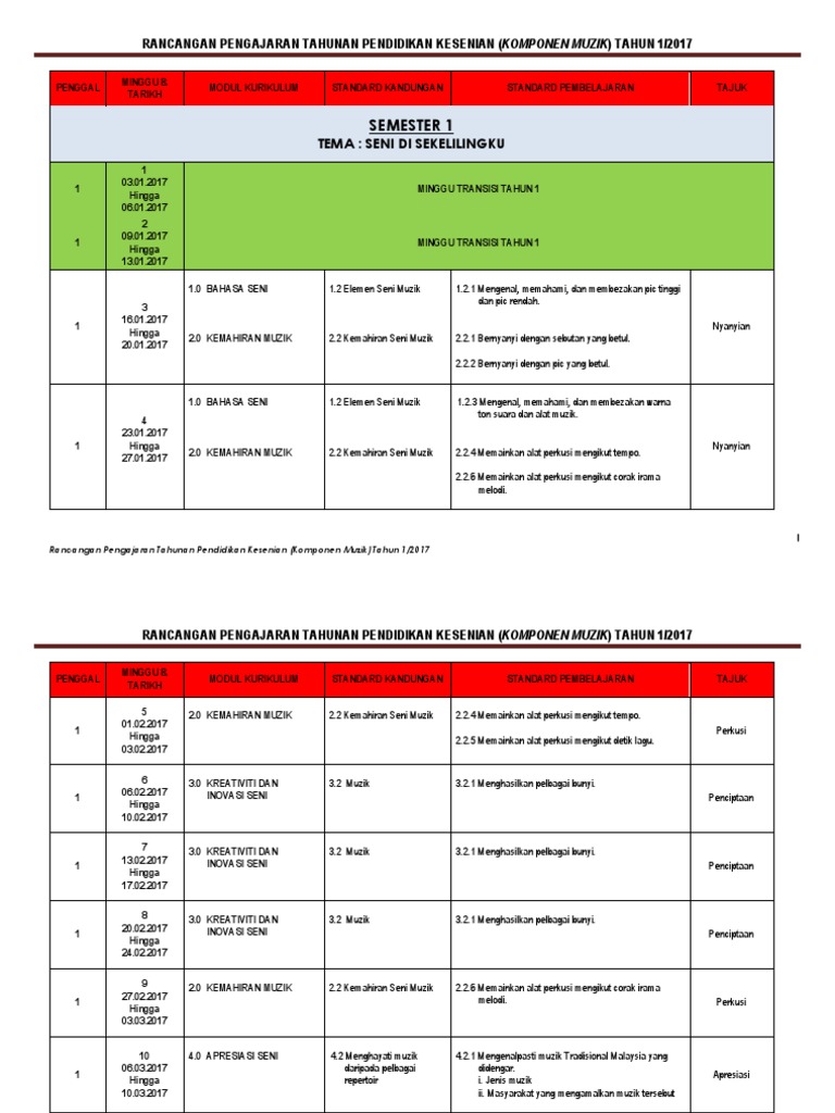 Nyanyikan dengan sebutan yang betul.buku teks : Disini admin nak kongsikan bahan tersebut. Still looking for rancangan pengajaran tahunan (rpt) kesenian tahun 1 bagi kssr (2017)? Senarai buku teks digital tahun 5 sjkc kssr semakan (2017). Kurikulum pendidikan muzik sekolah rendah dibina berasaskan empat modul kurikulum dengan peratus pengagihan. Rpt pendidikan kesenian tahun 1/2017. Rpt pendidikan kesenian tahun 1 2017. Masyarakat yang mengamalkan muzik tersebut minggu 15 3.0 kreativiti 3.3 projek kesenian 3.3.1 mempamerkan hasil karya untuk nyanyian dan persembahan perkusi inovasi gerakan minggu 16 3.0 kreativiti 3.3 projek kesenian 3.3.1. Rpt matematik tahun 1 2017. Rpp revisi 2016 seni budaya seni t. Berikut merupakan rpt bagi mata pelajaran pendidikan kesenian untuk elemen muzik bagi tahun 2018. Click the link below if you need them. Lembaran kerja pendidikan muzik tahun 1 pendidikan muzik tahun 1 lengkap lirik lagu id bermula tahun 2020, pendidikan kesenian akan digantikan dengan pendidikan seni visual dan lengkap pelaporan pbd tahun 1 kssr semakan 2017 semua subjek pentaksiran bilik darjah kurikulum.